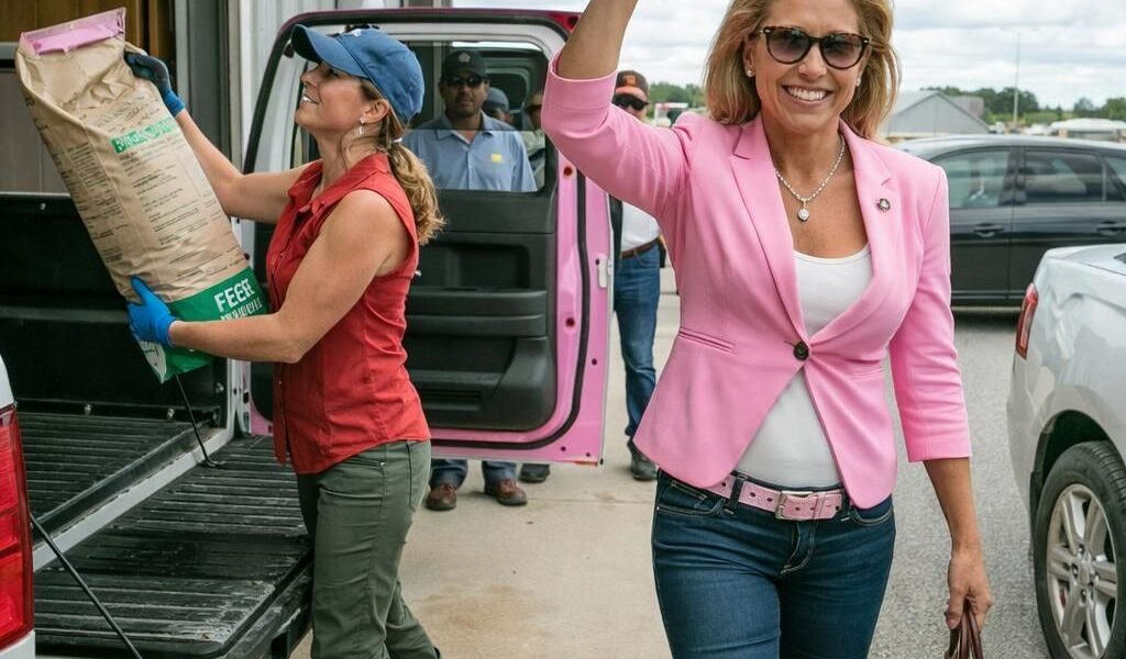 It was barely nine in the morning, but the Texas sun was already punishing, the kind of heat that soaked through denim and turned gravel into something that shimmered. I had one boot braced against my truck tire, lifting a fifty pound bag of grain into the bed, when a shadow fell across me that did not belong to a cloud.