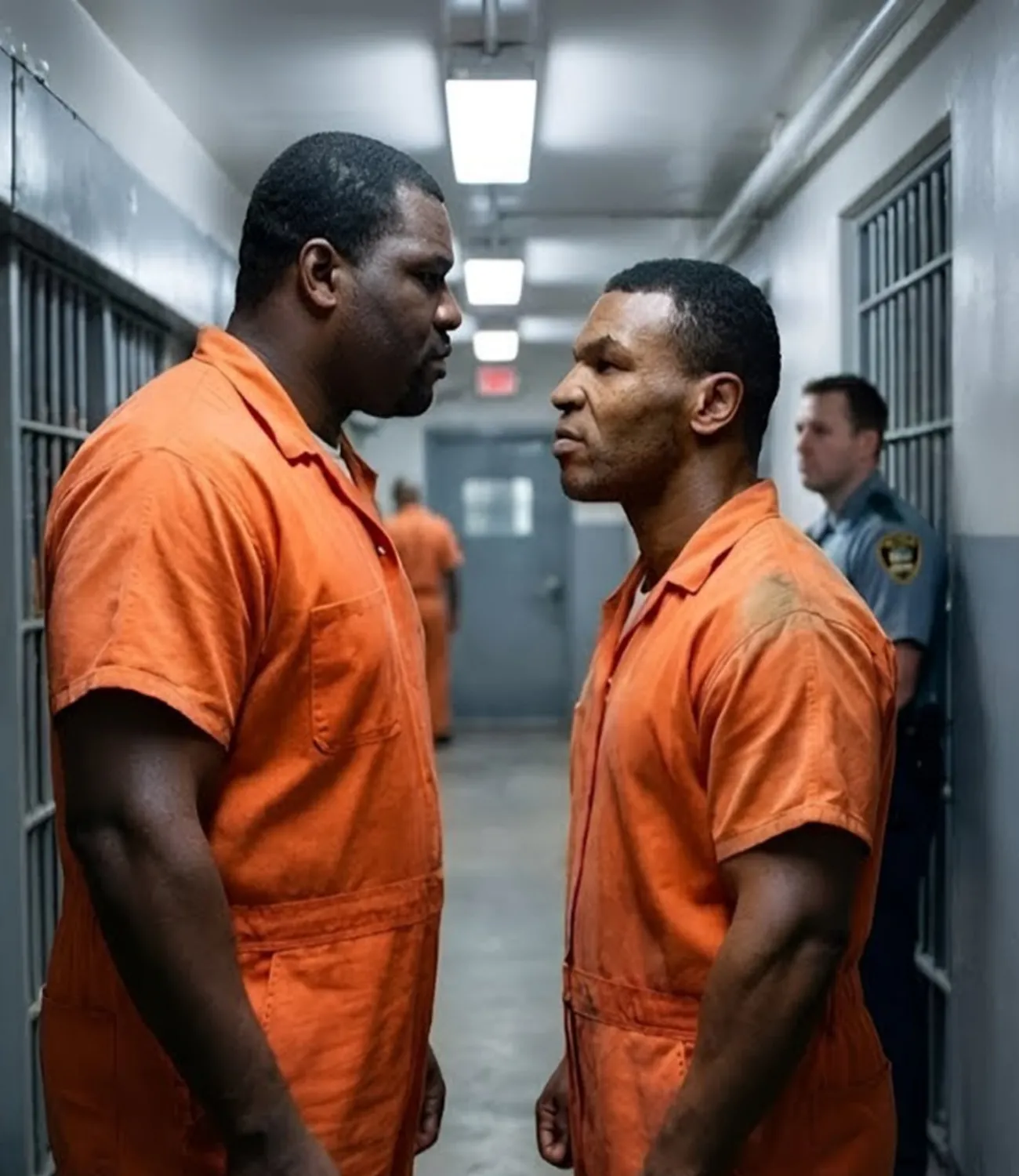 The 300-pound inmate stood directly in Mike Tyson’s path, arms crossed, blocking the corridor like a human wall. His eyes were cold, calculating, and everyone in the hallway stopped moving.