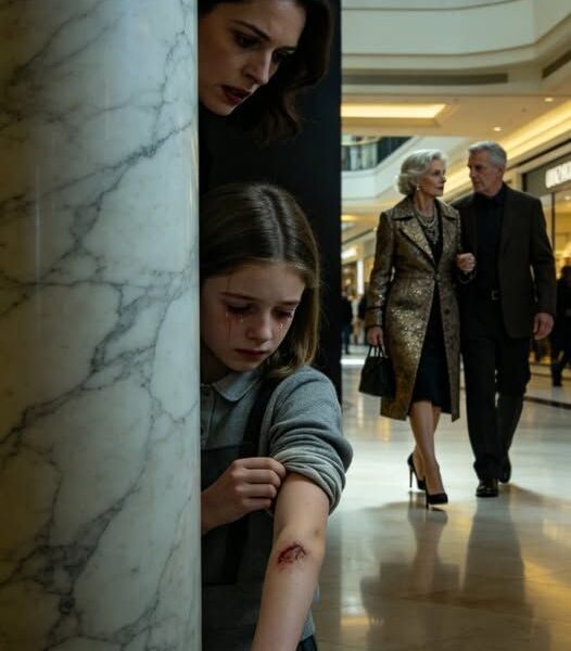 “Mom,” she whispered, her voice trembling. “Quickly. Behind the pillar. Don’t move.”