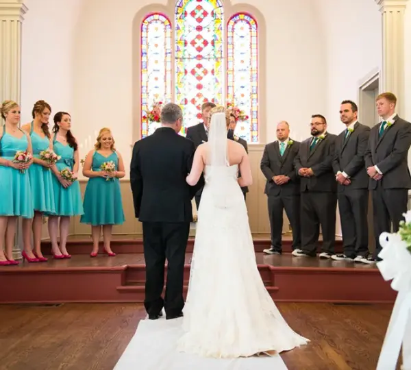 As I walked toward the church, clutching my bouquet, the nerves in my stomach fluttered with excitement. When I reached the altar, Jake stood waiting, serene and glowing.