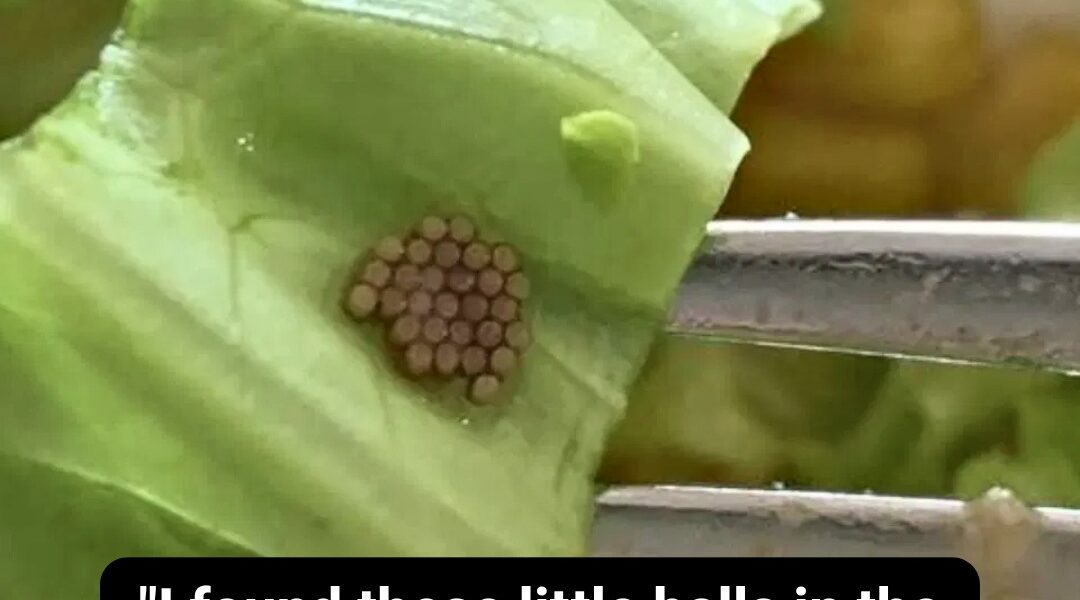 It happened during an ordinary lunch break, the kind where you barely glance at your food before digging in. She sprinkled what she assumed were grains of quinoa across her salad—tiny brown spheres that blended in with the lettuce. But when she leaned in for a closer look, her stomach flipped. These weren’t grains at all. They were perfectly round, tightly clustered, and arranged with eerie precision. In a split second, her appetite vanished. What she’d mistaken for a trendy superfood was something far less appetizing: a patch of insect eggs clinging to the underside of a lettuce leaf.