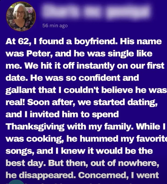 Kate’s sharp remarks no longer bothered me; my world revolved around Peter. On Thanksgiving, I invited him to dinner so he wouldn’t spend the day alone. I noticed him slipping into the kitchen to speak with Kate.