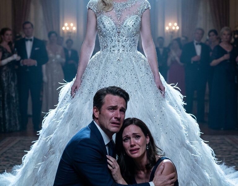 I checked my reflection in the rearview mirror. The woman looking back wasn’t the gardener. My hair, usually in a messy bun, fell in sculpted Hollywood waves. My dress was midnight-blue velvet, heavy and regal, encrusted with crushed real diamonds that caught the light like a trapped galaxy. Around my neck hung the Star of Aurora, a sapphire pendant so massive it felt like a cold weight against my sternum.