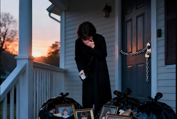 The day my father died, my stepmother stood at the funeral and cried like she’d lost the love of her life. That night, she changed the locks. By morning, my childhood photos were in trash bags on the porch—along with a note: “You’re not family anymore.” I was numb… until my dad’s lawyer called and said, “Where have you been? Your father left you everything.” The silence on the other end of the line wasn’t my lawyer. It was someone listening—and then the call dropped.