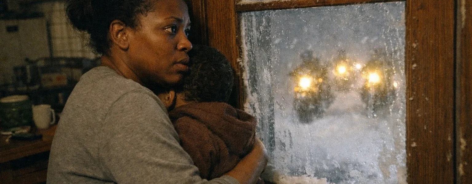 Three knocks sounded. “Ma’am, we need help. We’re freezing out here.” Williams held Marcus and stayed back, listening to the wind and the muted voices. Through a narrow gap in a snow-streaked window, she saw dark shapes and lights swaying in the storm. The scene matched every warning she had ever heard about motorcycle gangs.
