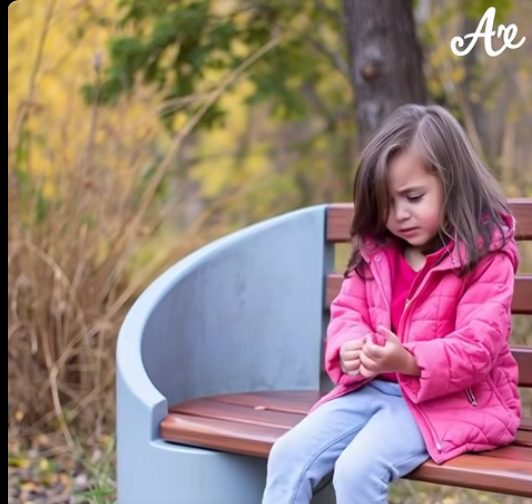 She was small, maybe ten years old, with long dark hair tucked under a faded beanie. She wore a pale jacket that looked too thin for the cooling weather and sat completely still on the bench across from the fountain.