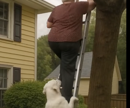 I placed the ladder against the trunk and tested its steadiness. As soon as my boot touched the first rung, Max froze. His entire body went rigid, his eyes locked on mine with a tension I hadn’t seen before. I dismissed it with a quick laugh. “Relax, buddy. I’ll be down in a minute.” I climbed another rung, and that’s when I felt the tug. Not a gentle nudge—this was a sharp, insistent pull at the cuff of my trousers. I looked down, startled, and saw Max clamped onto the fabric, teeth gripping hard enough that I nearly slipped. “Hey! What’s gotten into you?” I said, trying to shake him off without hurting him. He wouldn’t let go. He braced himself, digging his paws into the dirt, eyes wild with a warning I didn’t understand.