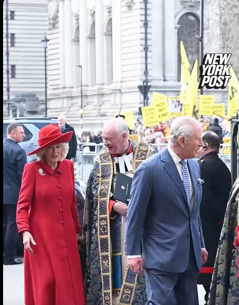 Middleton, Prince William, King Charles, and Queen Camilla were seemingly unaffected by the chaos. Wearing their Sunday best, the trio made their way past the protesters and into the services without acknowledging them.