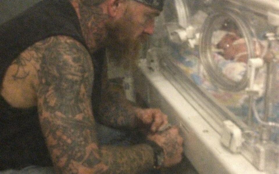 Tattooed biker refused to leave the NICU.