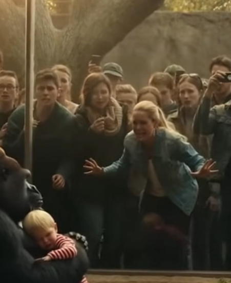 A woman was running toward the gorilla enclosure, her movements frantic, uncoordinated in a way that spoke of pure panic rather than intention. Her face was streaked with tears, her voice breaking as she called out something that, at first, I couldn’t fully make out.