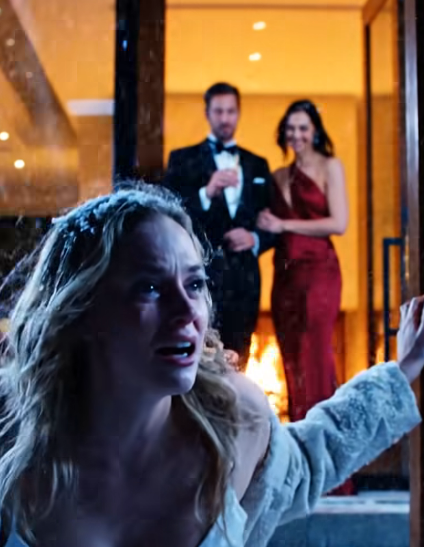 The snow did not fall gently that night; it came down in thick, relentless sheets that erased edges and softened sound, turning the world outside our Aspen estate into something deceptively peaceful, which felt like a cruel joke given that my entire life was splintering in real time as I stood barefoot on the icy stone steps of a house I had helped design, watching through the illuminated glass walls as my husband raised a champagne flute and laughed.