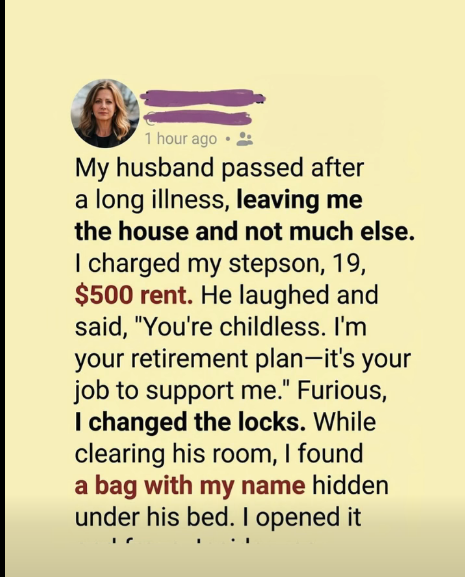 By the next morning, my hurt had turned into resentment. Convinced he didn’t understand our situation, I began packing his things. While cleaning his room, I noticed a duffel bag under the bed with my name on it.