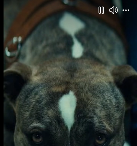 A massive pitbull, all muscle and quiet power, its head broad and solid, its coat marked by a patch of white over one eye and a scar that cut across its snout like a permanent reminder of a past no one had bothered to soften.