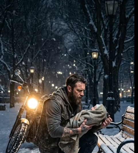 He killed the engine, and the sudden silence made the cry feel louder, closer, like the park itself was holding its breath. Caleb swung off the bike and followed the sound, boots crunching softly through fresh snow until his headlight beam landed on a park bench half-buried beneath white, and on that bench lay a small, unmoving bundle that should not have been there at all. For a moment he stood frozen, fear and disbelief tangling in his gut, because some sights rearrange you whether you’re ready or not.