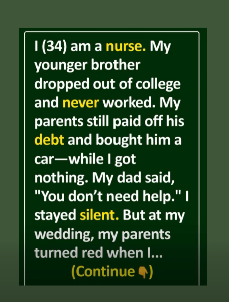 I’m 34 and work as a nurse. My younger brother dropped out of college and has never worked, yet my parents paid off his debt and even bought him a car. When I needed help, I got nothing. My dad simply said, “You don’t need it,” and I stayed quiet.