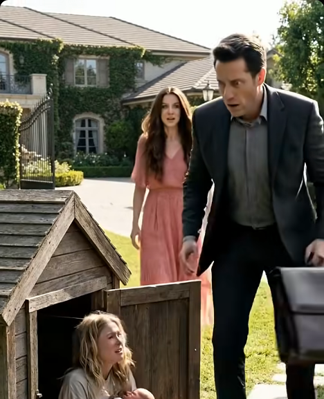 For a split second, she stood frozen—then rushed outside, her movements suddenly hurried, her composure slipping. She ran toward the doghouse, yanked the door open slightly, and hissed: